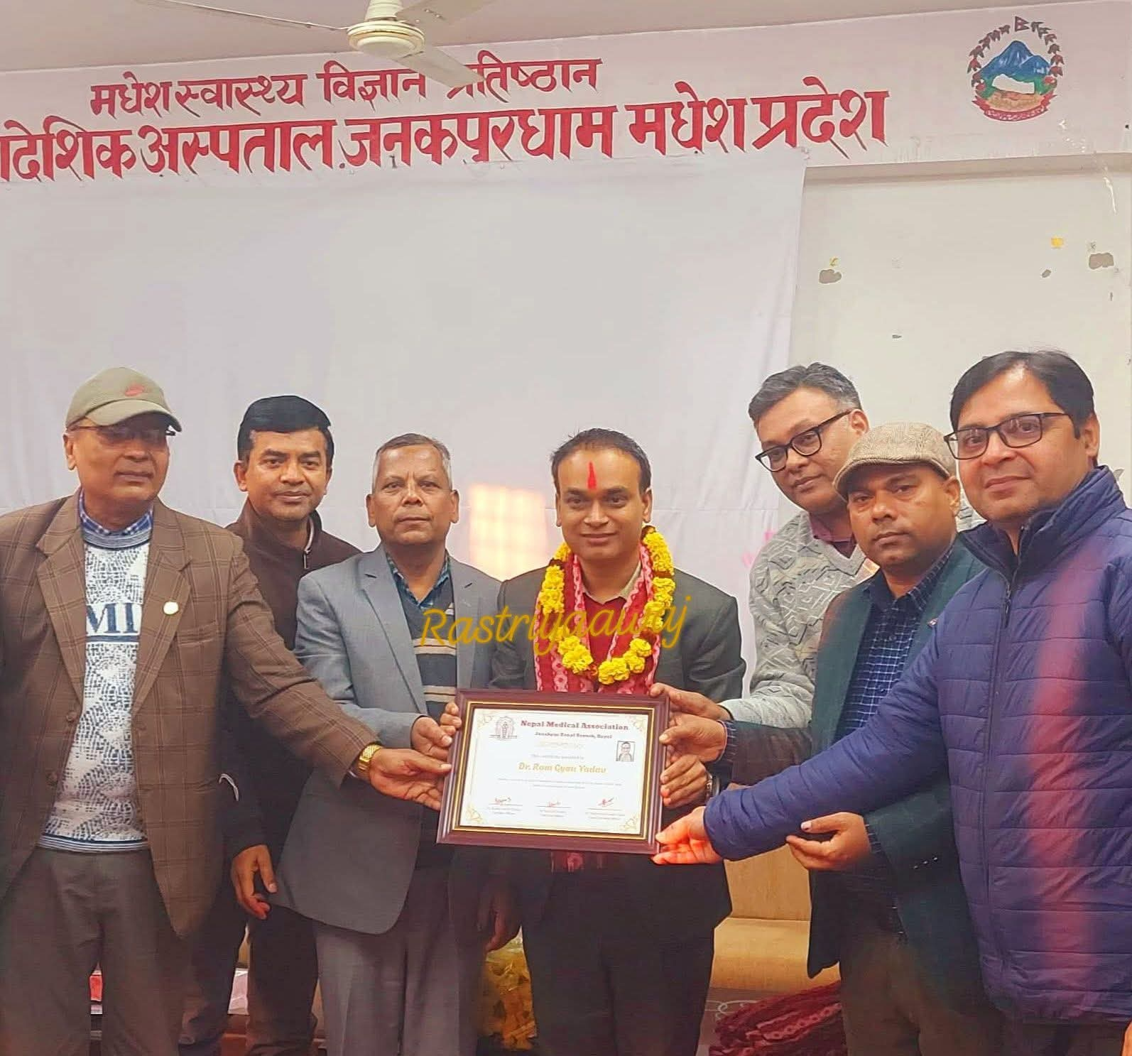 ईन्द्र भुषण यादब  जनकपुरधाम, पुष २७ गते    नेपाल मेडिकल एशाेसिएसनकाे अध्यक्षमा डा. रामज्ञान यादव निर्वाचित भएका छन् । वरिष्ठ छालाराेग विशेषज्ञ डा. यादव जनकपुरधामकाे प्रादेशिक अस्प..