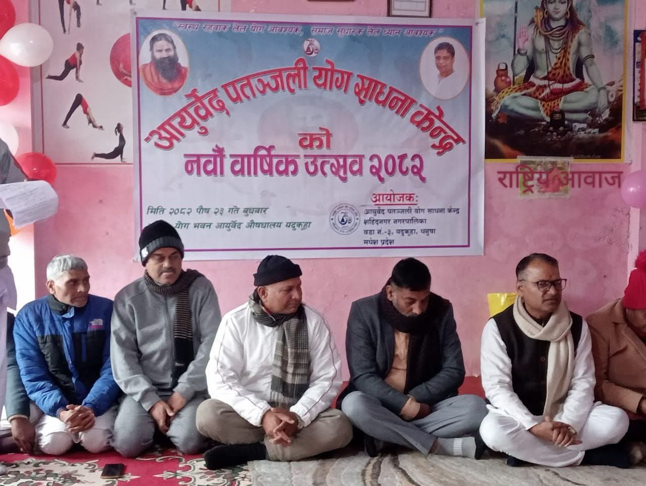 “स्वस्थ रहवाक लेल योग आवश्यक, समाज सुधारक लेल ध्यान आवश्यक” भन्ने नारासहित आयुर्वेद पतञ्जली योग साधना केन्द्रको नवौं वार्षिक उत्सव आज बुधबार सम्पन्न भएको छ।
